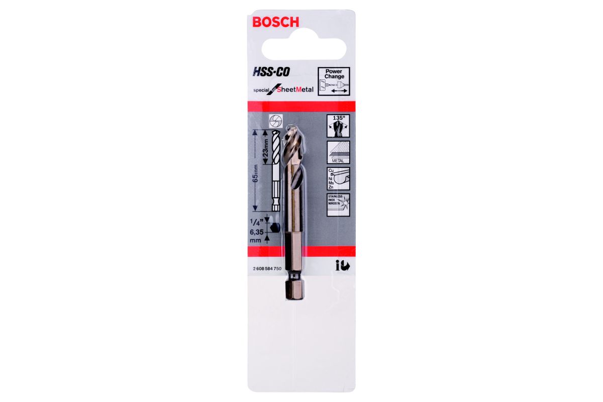 Центрующее сверло HSS-Co с шестигранным хвостовиком 1/4'', угол острия 135°, крестообразная подточка.