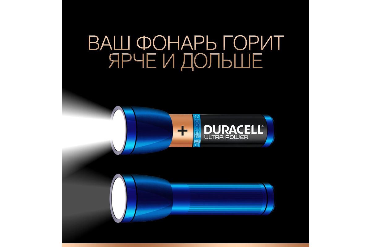 •С батарейками Duracell Ultra Power Ваш фонарь будет светить дольше и ярче (по сравнению с ведущими аналогами в ходе тестирования на основе всемирно принятого стандарта ANSI/NEMA Fl1 с использованием фонарей Led Lenser M5; результаты могут отличаться в зависимости от устройства и особенностей использования)
