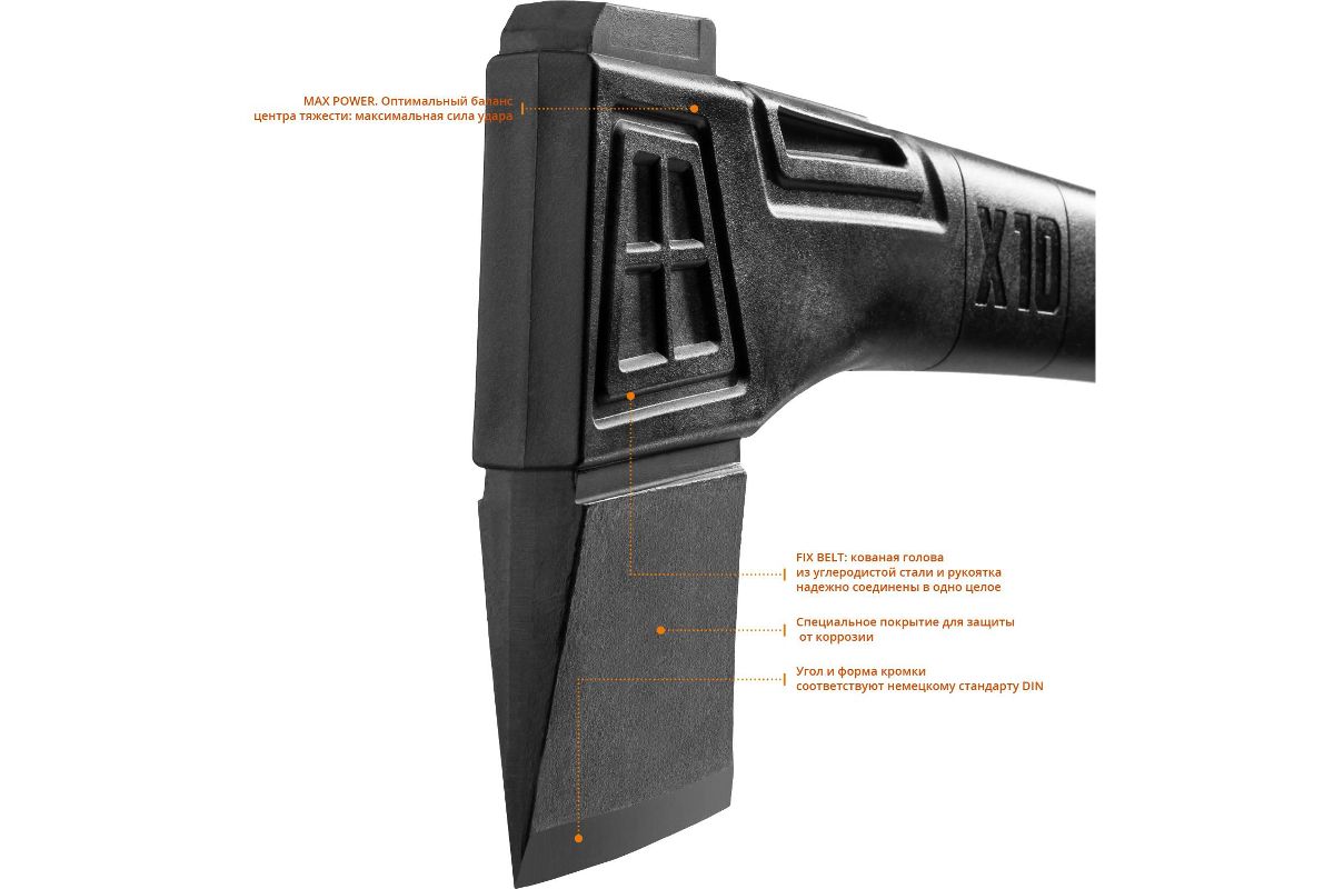 Колун финского типа с рукояткой из армированного нейлона X-Fiber с технологией фиксации головы FixBelt и морозоустойчивой технологией PolarTech -