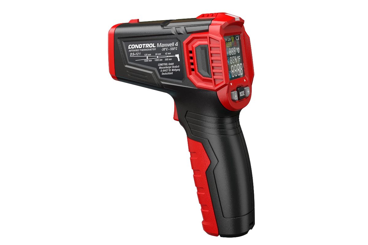 CONDTROL Maxwell 4 – портативный инфракрасный пирометр-гигрометр, позволяющий определить бесконтактным способом температуру поверхности объекта в диапазоне – 30 °С до 550°С. Отличительной особенностью является встроенный гигрометр, позволяющий измерять температуру среды. Пирометр CONDTROL Maxwell 4 сочетает в себе все функции, необходимые для контроля температуры в системах вентиляции, отопления, кондиционирования. Он способен определить перегрев различных механических и электрических устройств, диагностировать короткое замыкание. Точные измерения, интуитивный интерфейс и компактные размеры делают пирометр CONDTROL Maxwell 4 незаменимым помощником сотрудников жилищно-бытовой, строительной, ремонтной сфер деятельности.