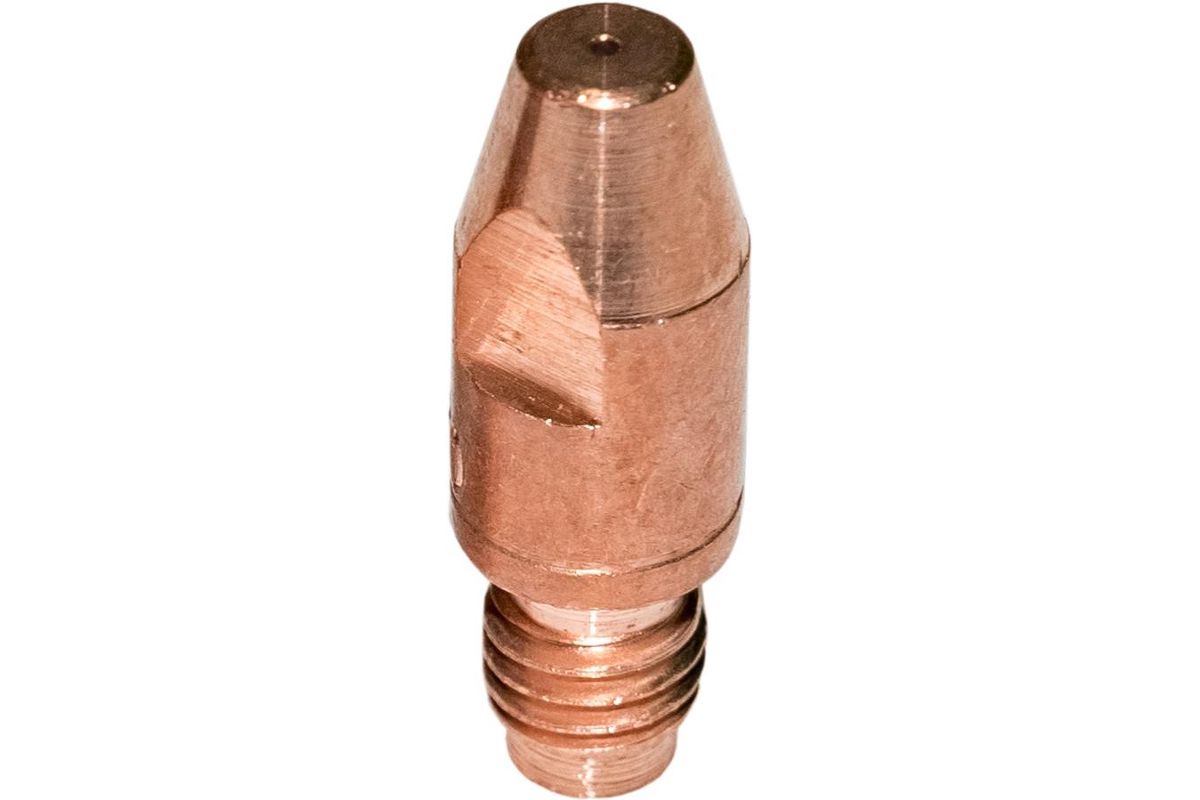Наконечник предназначен для горелок MIG/MAG. Применяется для точной подачи проволоки и переноса сварочного тока на проволоку. Наконечник присоединяется к держателю наконечника с помощью резьбы М8. Изготовлен из сплава меди, хрома и циркония, что обеспечивает надежность и долговечность использования. Применяется для подачи всех типов проволоки.