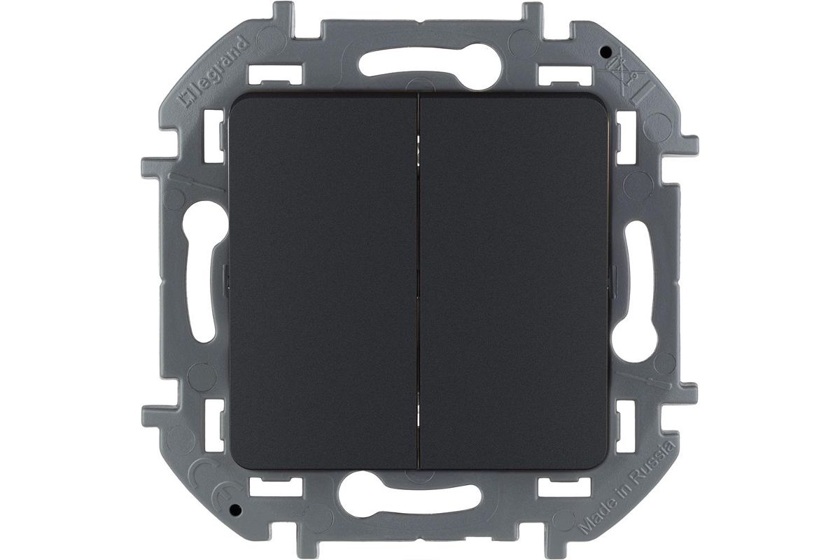 Выключатель двухклавишный Legrand Inspiria для скрытого монтажа, цвет ''Антрацит'', номинальный ток 10 А, напряжение ~250В.