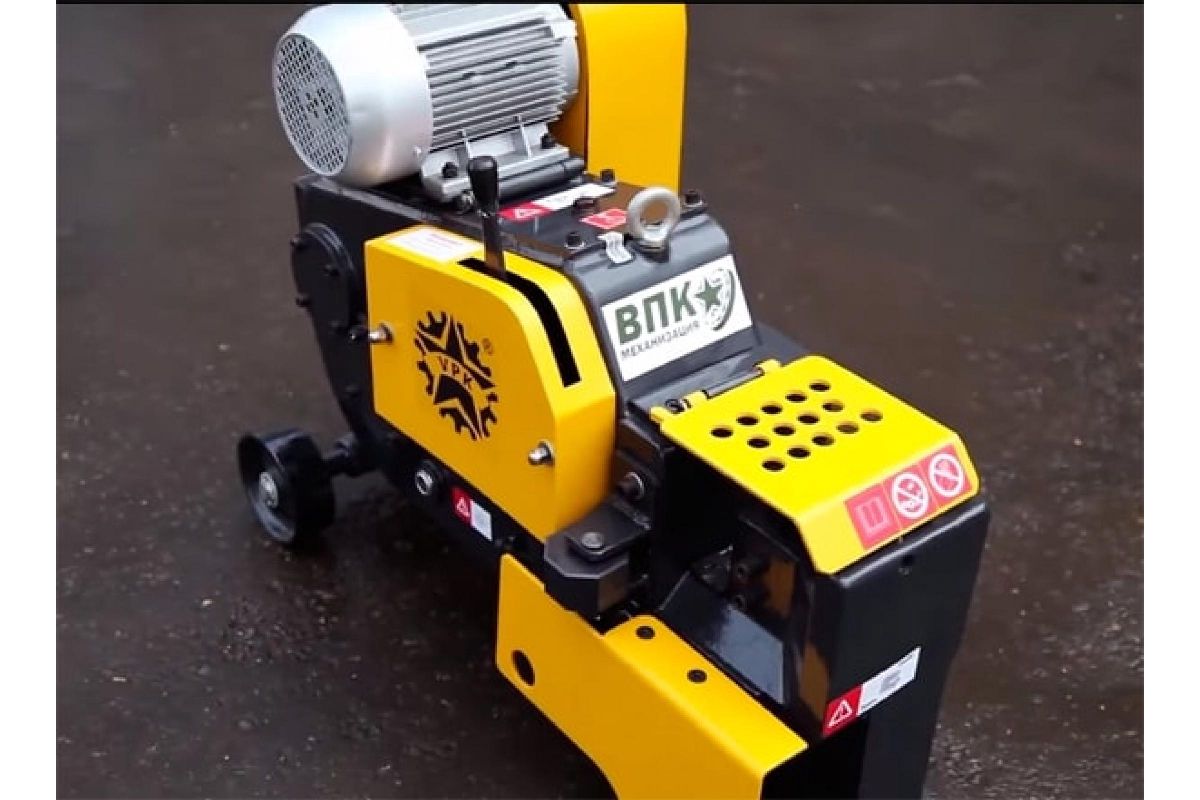 Станок для резки арматуры предназначен для нарезания арматурной стали с круглым и квадратным сечением. Мощный двигатель передает вращение на кулисный механизм через маховик и редуктор. Оборудование широко используют во время производства железобетонных конструкций. Модель отличается высокой производительностью благодаря увеличенной частоте хода ножа.