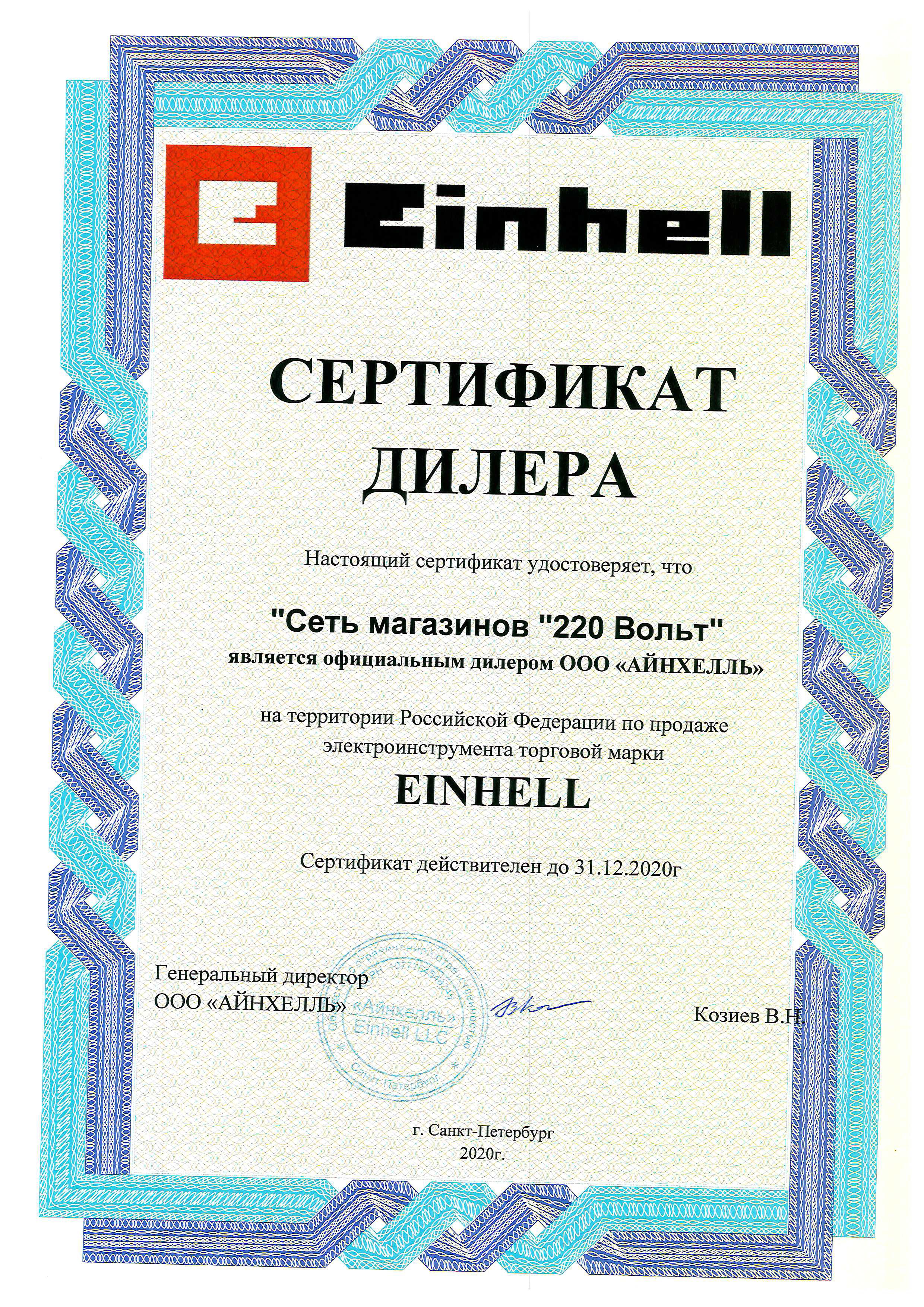 Einhell Germany AG — немецкая компания, основанная в 1965 году Джозефом Танхубером. Бренд Einhell предлагает высокое качество продукции по оптимальной цене, а также сервис и превосходный дизайн. За годы развития компания превратилась во всемирно известного производителя электроинструментов и строительного оборудования. Продукцию ежедневно используют тысячи мастеров в более 90 стран мира. Штаб-квартира находится в Ландау-на-Изаре (Германия).